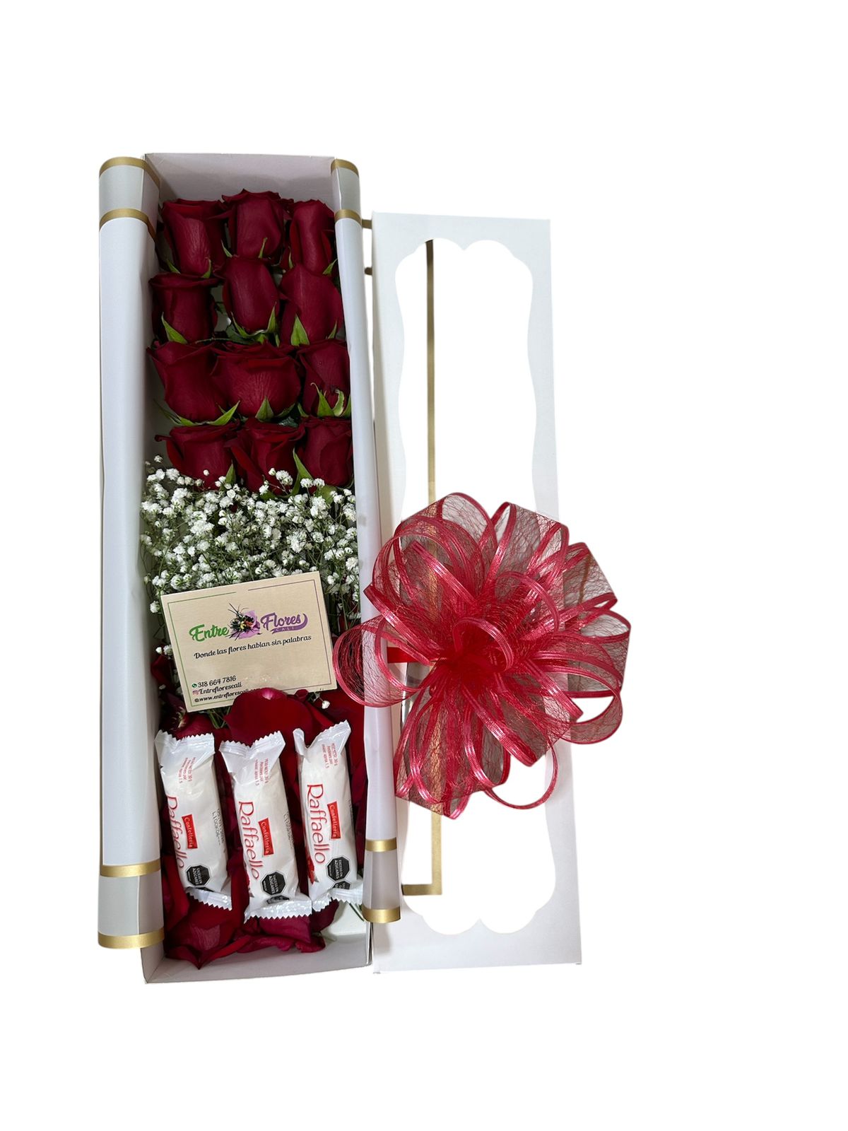 Caja de rosas y chocolates Raffaello