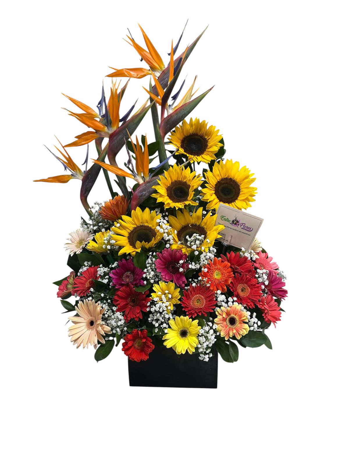Flores con la finalidad de llevar a las personas que reciben este talle con alegría, amor  y felicidad. En rosas rojas, amarilla, rosa blanca, hortensia, girasoles, aves del paraíso, y orquídeas para nuestros clientes.